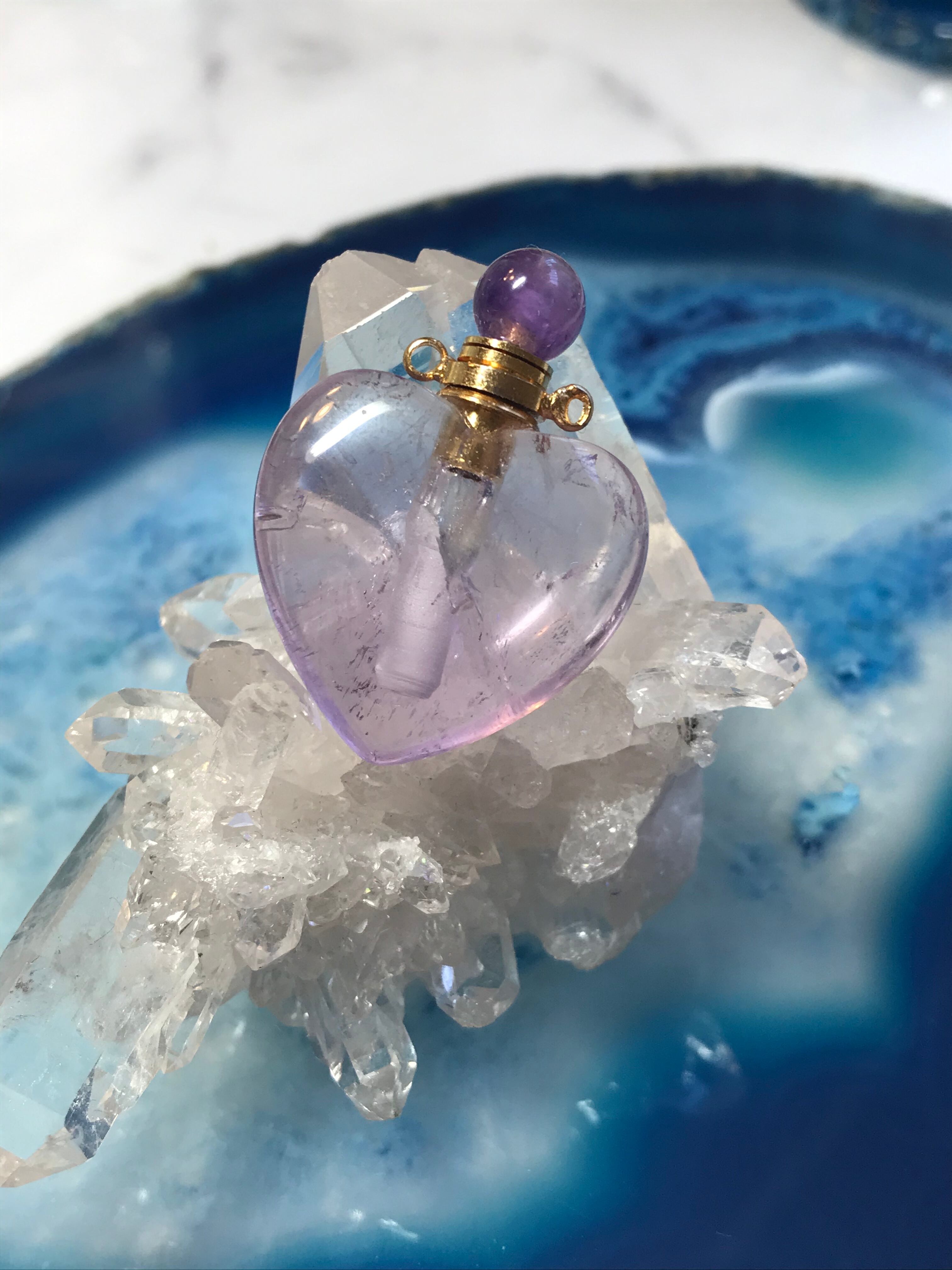 アメジストの透明感のあるネックレス用香水瓶です。ハートの形が可愛いです。